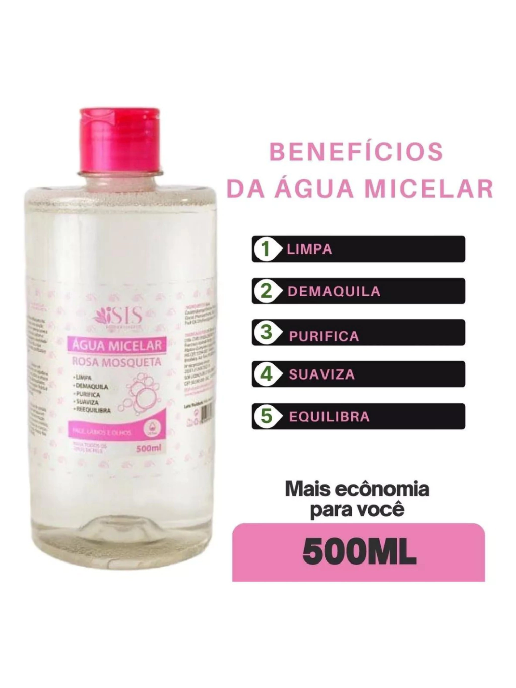 Água micelar rosa mosqueta Isis Rezende Make-up é uma solução que limpa a pele de maneira suave e sem irritá-la. As micelas captam e eliminam a maquiagem, oleosidade e impurezas do dia a dia, o que deixa a pele hidratada, purificada e com vitalidade