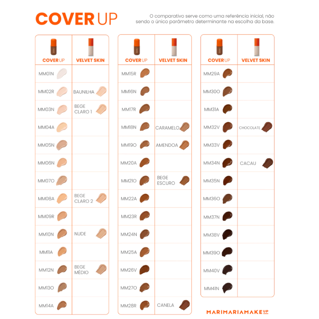 Com secagem rápida e cobertura ajustável, que vai de média a alta, a base Cover Up se adapta às diferentes necessidades, proporcionando um resultado personalizado. A base uniformiza o tom da pele e disfarça com naturalidade imperfeições como manchas, cicatrizes, marcas e olheiras, tudo isso com alta durabilidade para manter a pele impecável ao longo do dia.