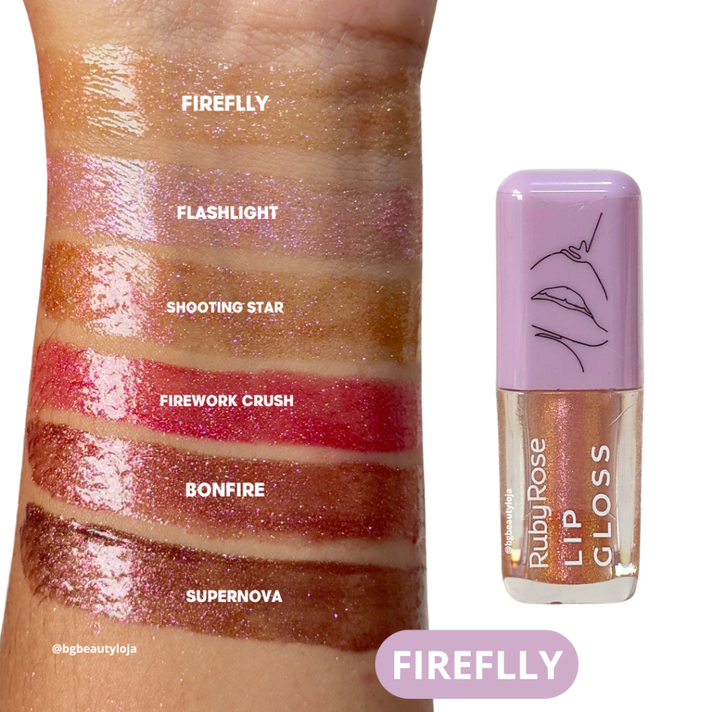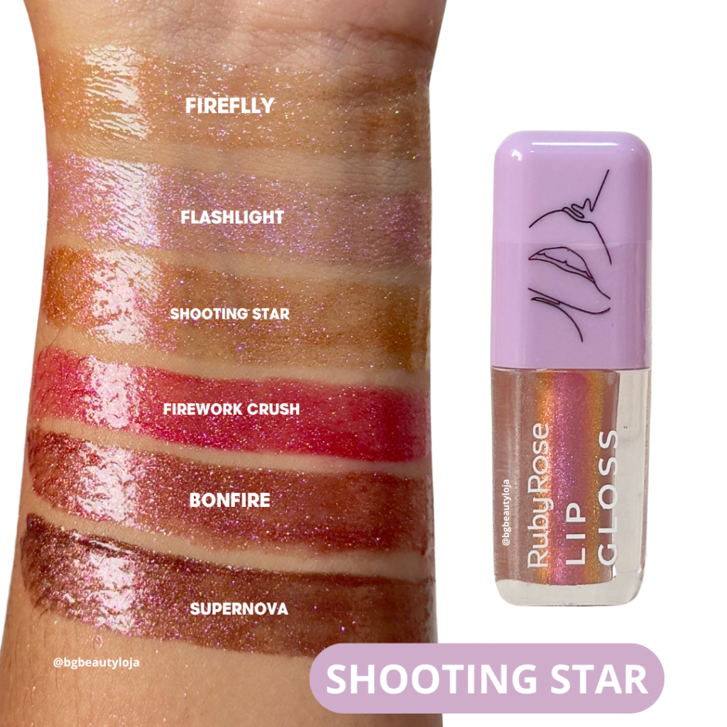 Descubra o Gloss Brilhante da Ruby Rose e transforme seus lábios com um efeito molhado e brilho intenso! 🌟 Enriquecido com Vitamina E, ele não só proporciona um toque de glitter deslumbrante, mas também oferece hidratação e proteção para a sua boca.