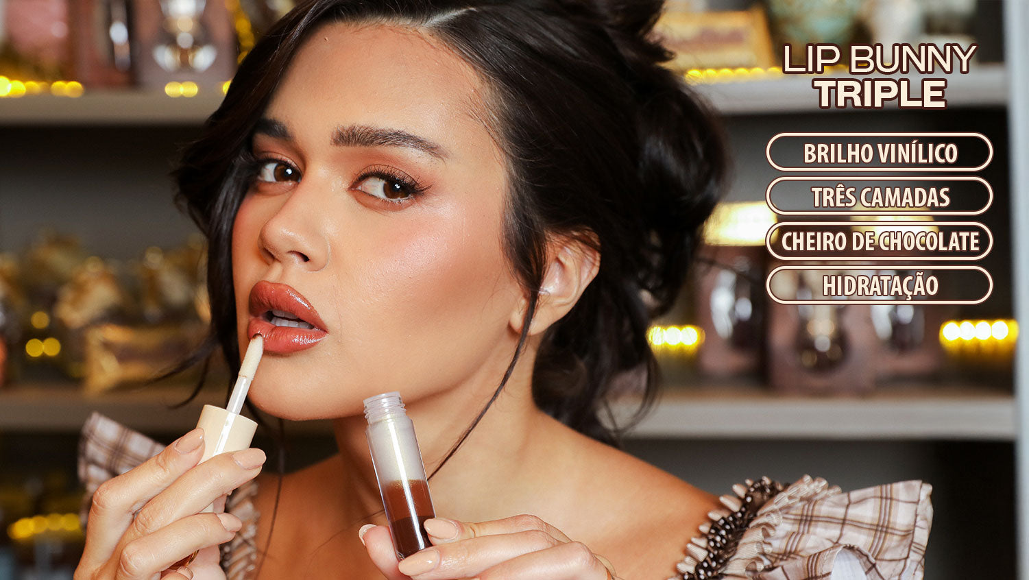 Chegou o LIPBUNNY TRIPLE, o gloss de chocolate com três camadas que vai conquistar seu nécessaire (e seu coração). 🍫🐰